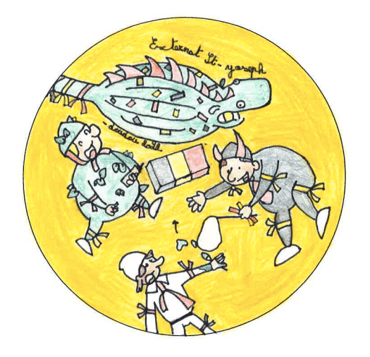 C’est pourquoi, avant les vacances de printemps, nous les avons invité à réaliser un dessin en rapport avec la Ducasse de Mons dans un cercle de minimum 12cm de diamètre. Celui-ci était à remettre à leur enseignant au plus tard pour le vendredi 22 avril.
