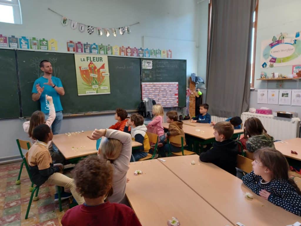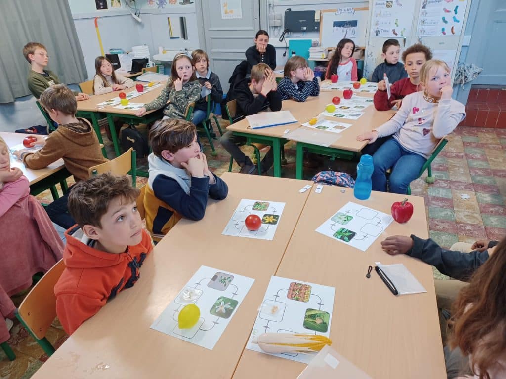 Ce lundi 03 avril 2023, les élèves de nos deux classes de P3 ont eu la chance de vivre l’animation « De la fleur au fruit ».