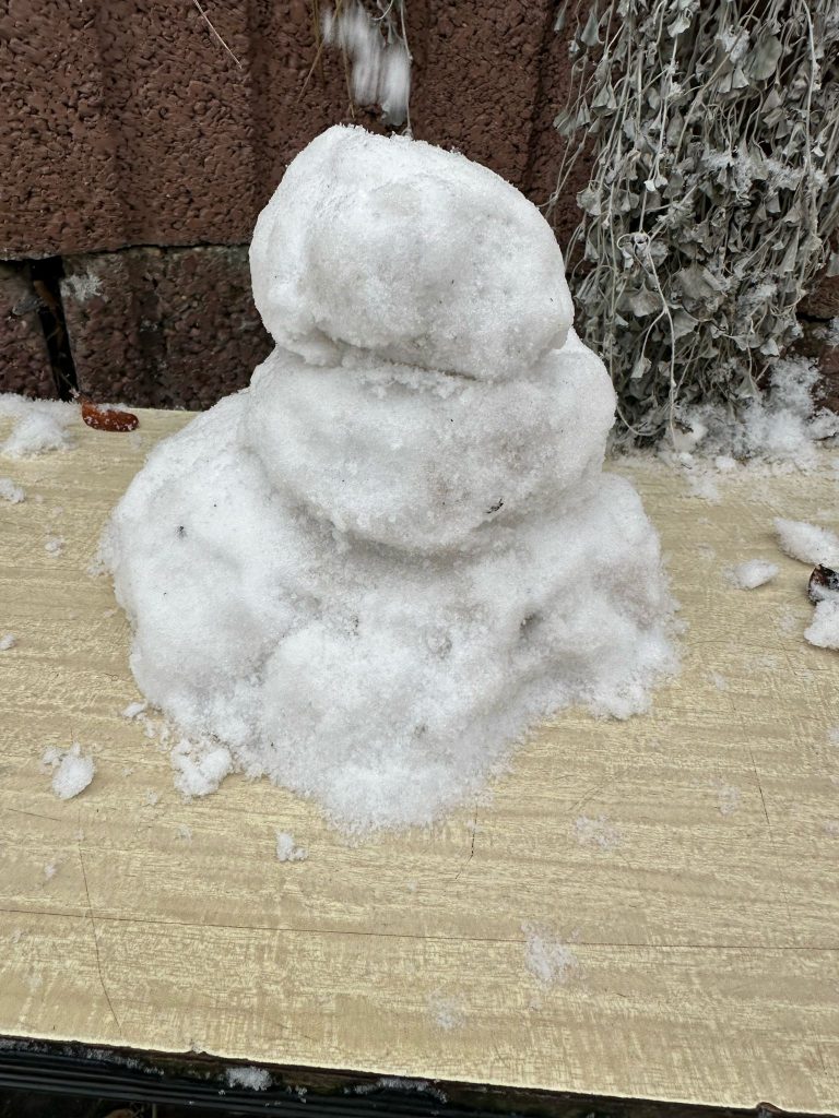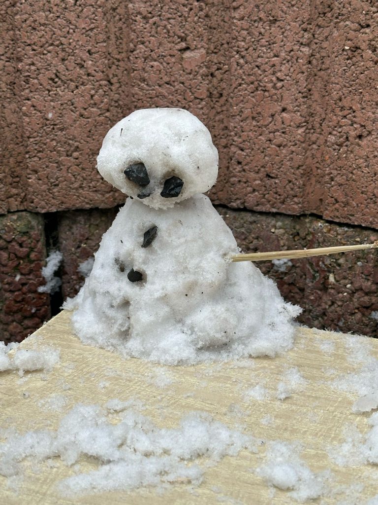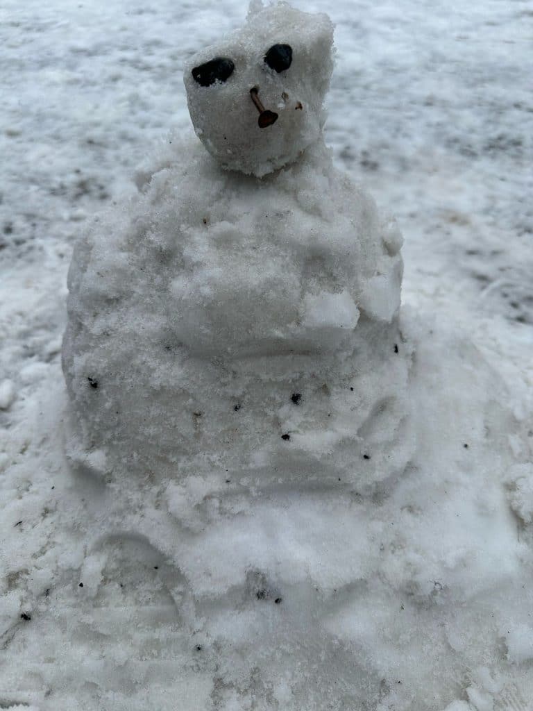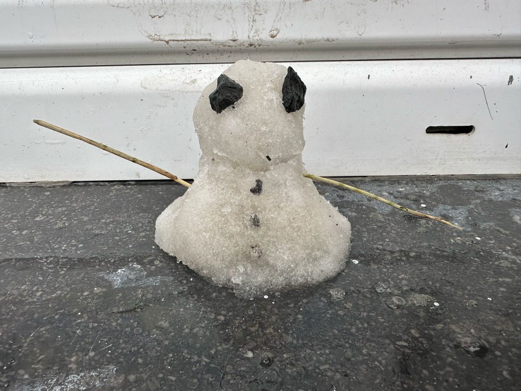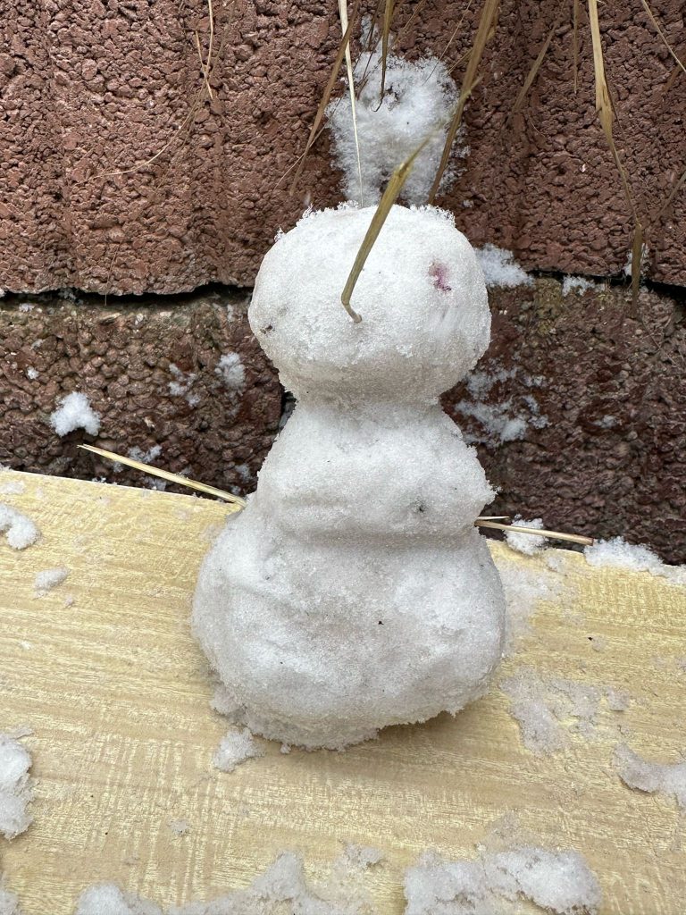 Le clou de cette matinée mémorable fut, sans doute, l’organisation d’un petit concours de bonhommes de neige miniatures, entre 12h00 et 13h00, en attendant la venue des parents, souvent « en retard », vu le caractère exceptionnel de la météo !