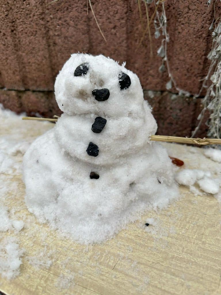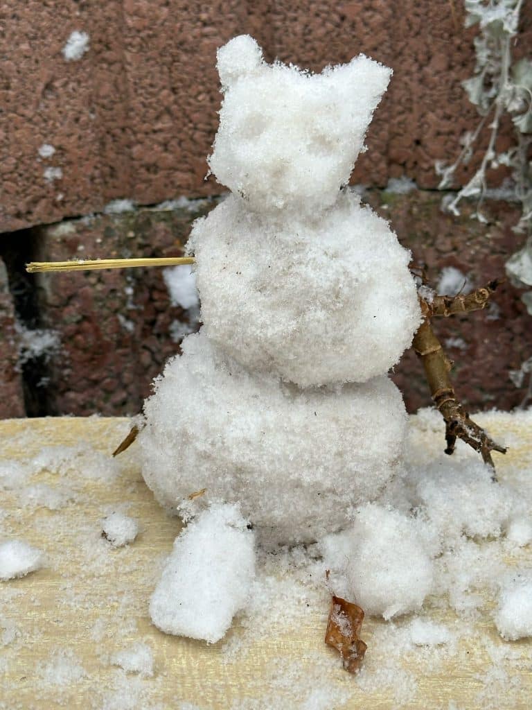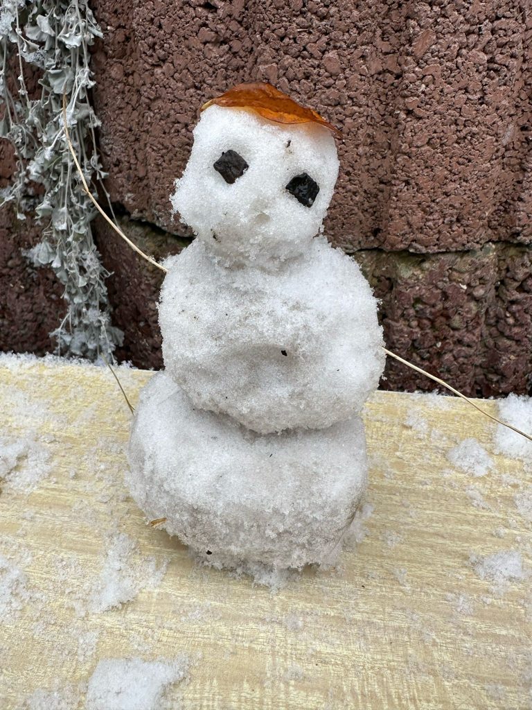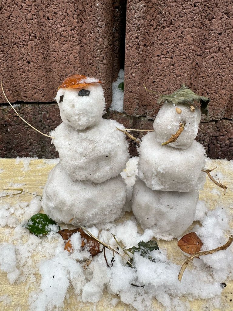 Certains bonhommes de neige arboraient des accessoires, d’autres se distinguaient par leur sourire façonné avec des cailloux ou des parties de végétation.
