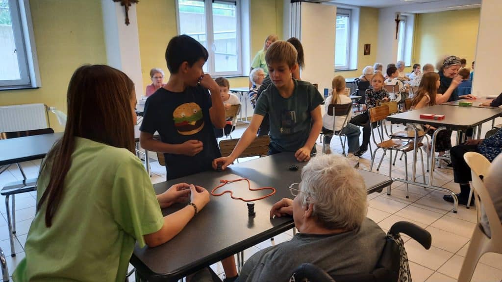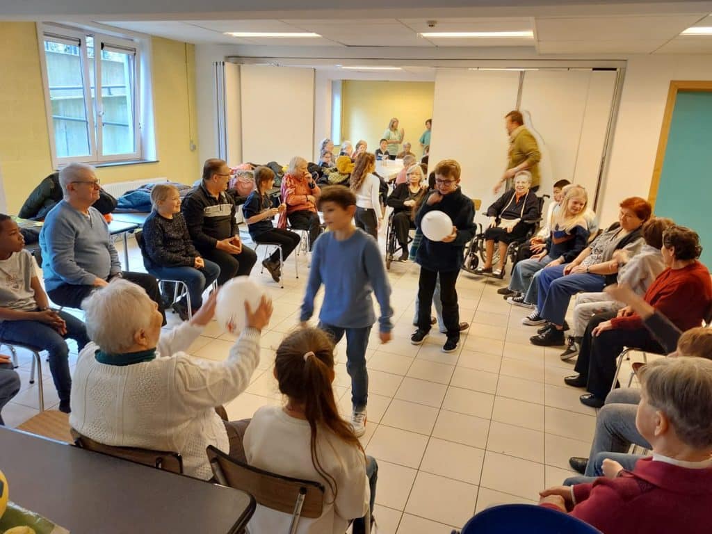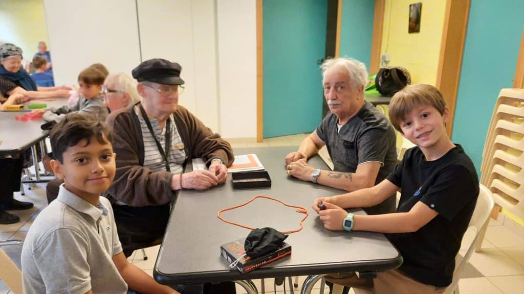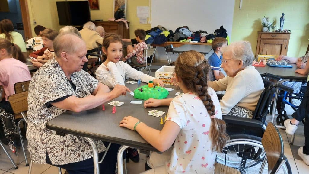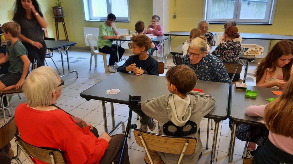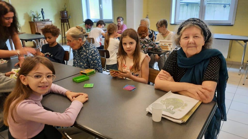 Les enfants se sont vraiment adaptés et on fait preuve de patience dans l’explication des jeux. Quelle magnifique aventure et que de richesse dans les échanges entre ces générations.