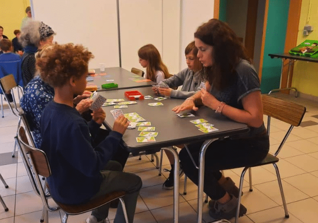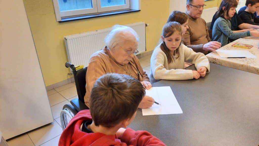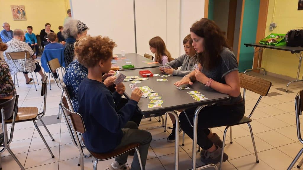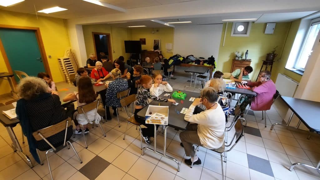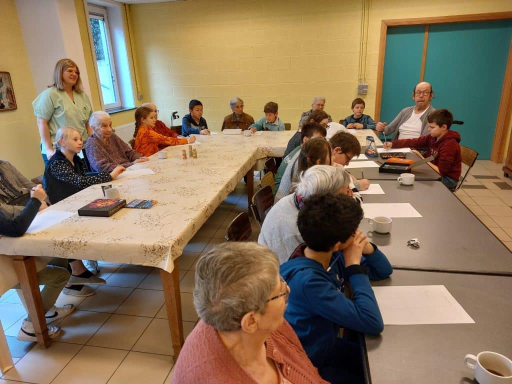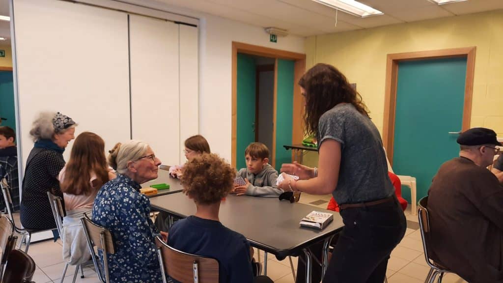 Les élèves ont apporté des jeux de société qu’ils avaient fait valider par leur institutrice et qu’ils avaient préalablement testés en classe, de façon à pouvoir y jouer avec les résidents du home en connaissant parfaitement les règles.