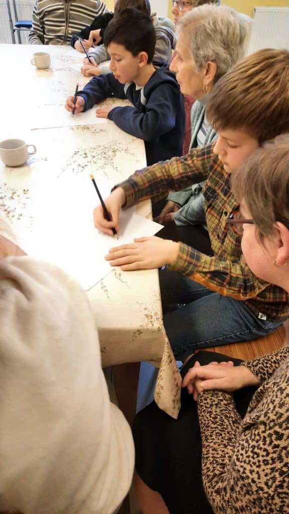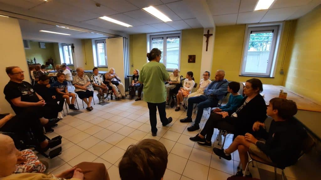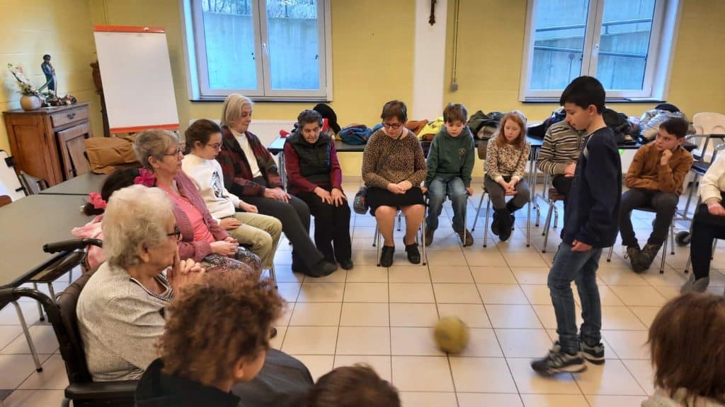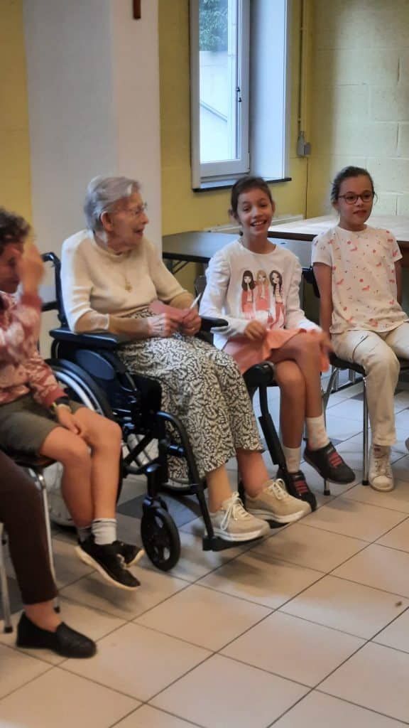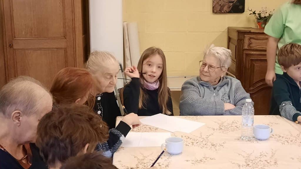 Créer un tel projet ne se limitait pas simplement à mettre en présence les enfants et les personnes âgées. Le cœur même du projet est de favoriser l’émergence d’un lien entre les participants. C’est pourquoi nos enseignantes et le personnel encadrant des Pauvres Soeurs ont dû mettre en place des supports et un cadre adaptés pour y parvenir.