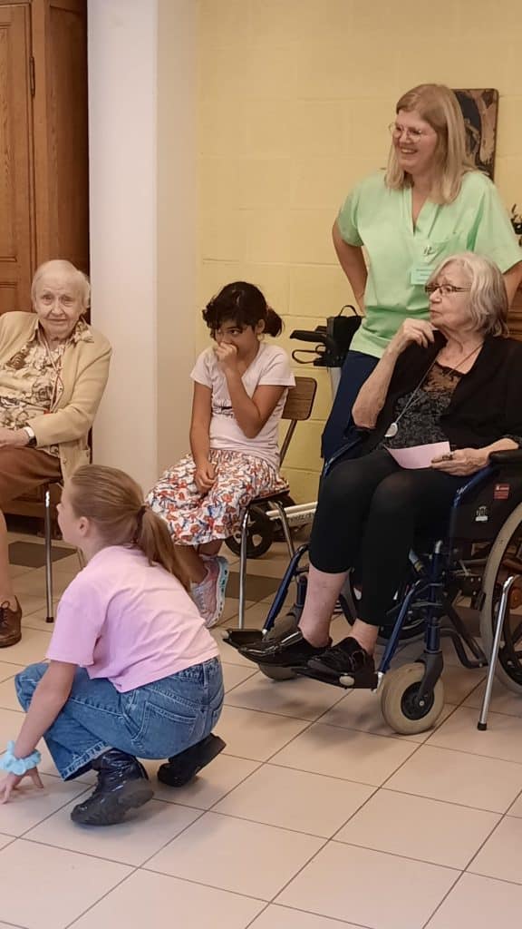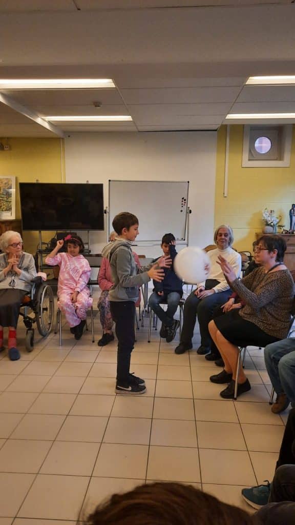 Chacun devait être libre de participer ou non aux activités intergénérationnelles. Nous demandions toujours aux enfants leur avis (même s’ils étaient toujours très enthousiastes !) ainsi qu’aux résidents. Il était primordial qu’aucune obligation ne se fasse sentir de part et d’autre.