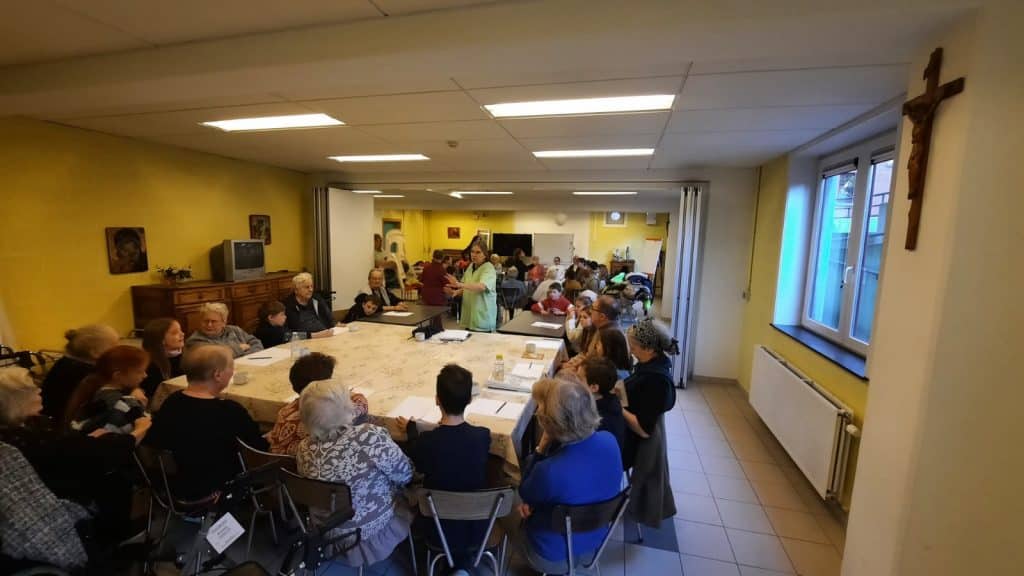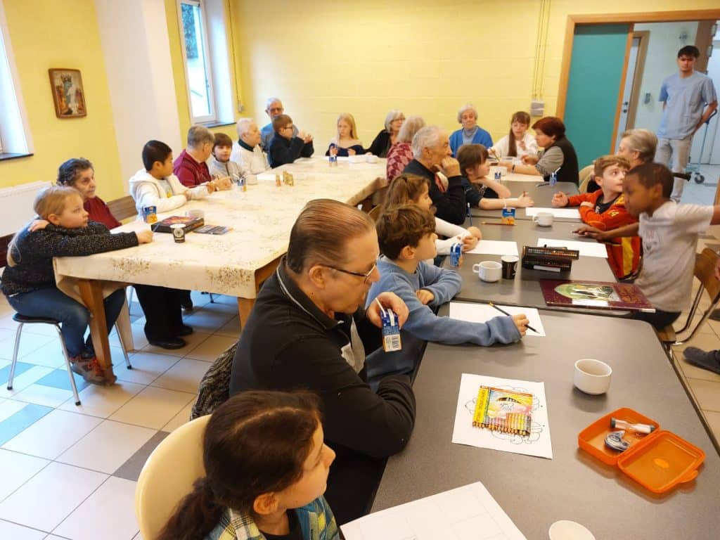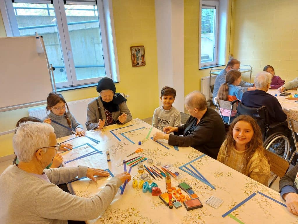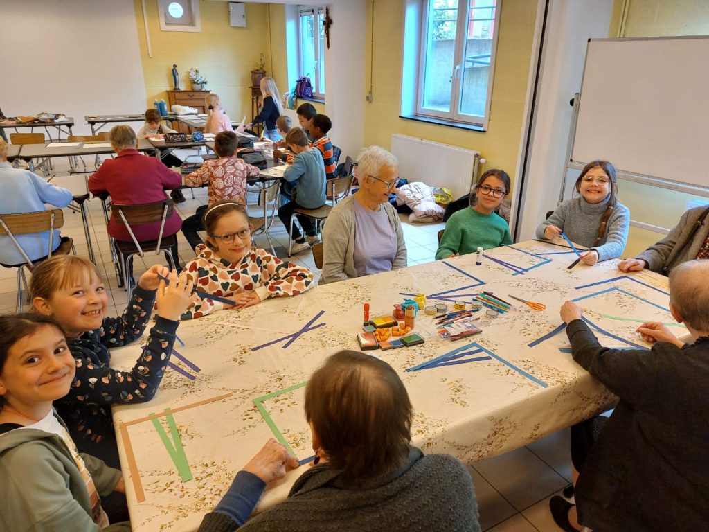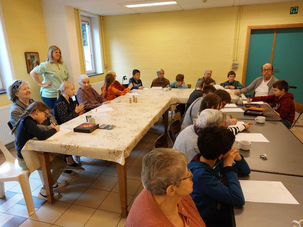 Cette année, un nouveau projet est né, suite à l’initiative de Mesdames Marie Attout et Valérie-Anne Michel, institutrices en quatrième primaire à l’Externat Saint-Joseph d’Hyon. Elles ont axé un des volets de notre thème d’année (Foi et Justice) sur des rencontres régulières entre nos élèves et quelques résidents de la maison de repos « Les Pauvres Sœurs », située au numéro 22 de la Rue de Bertaimont, à Mons.