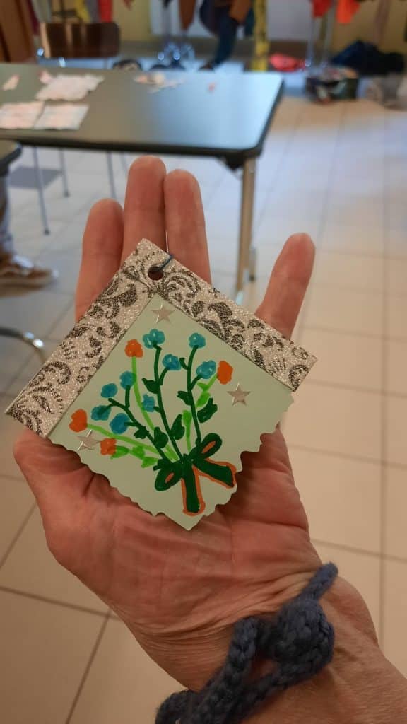 Après le spectacle, les enfants ont pu offrir une carte de vœux personnalisée à chaque personne âgée.