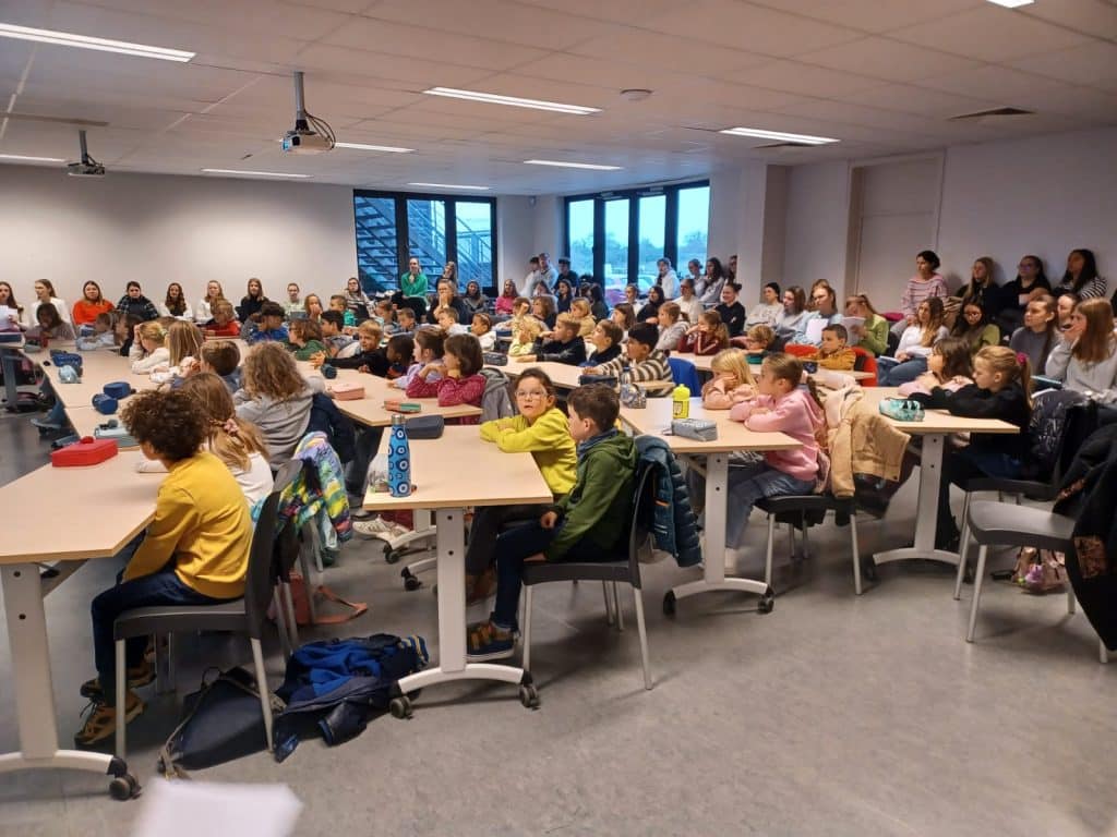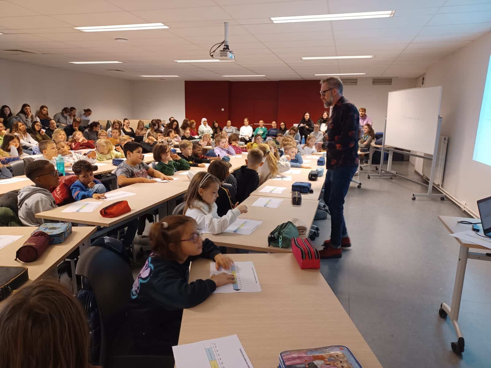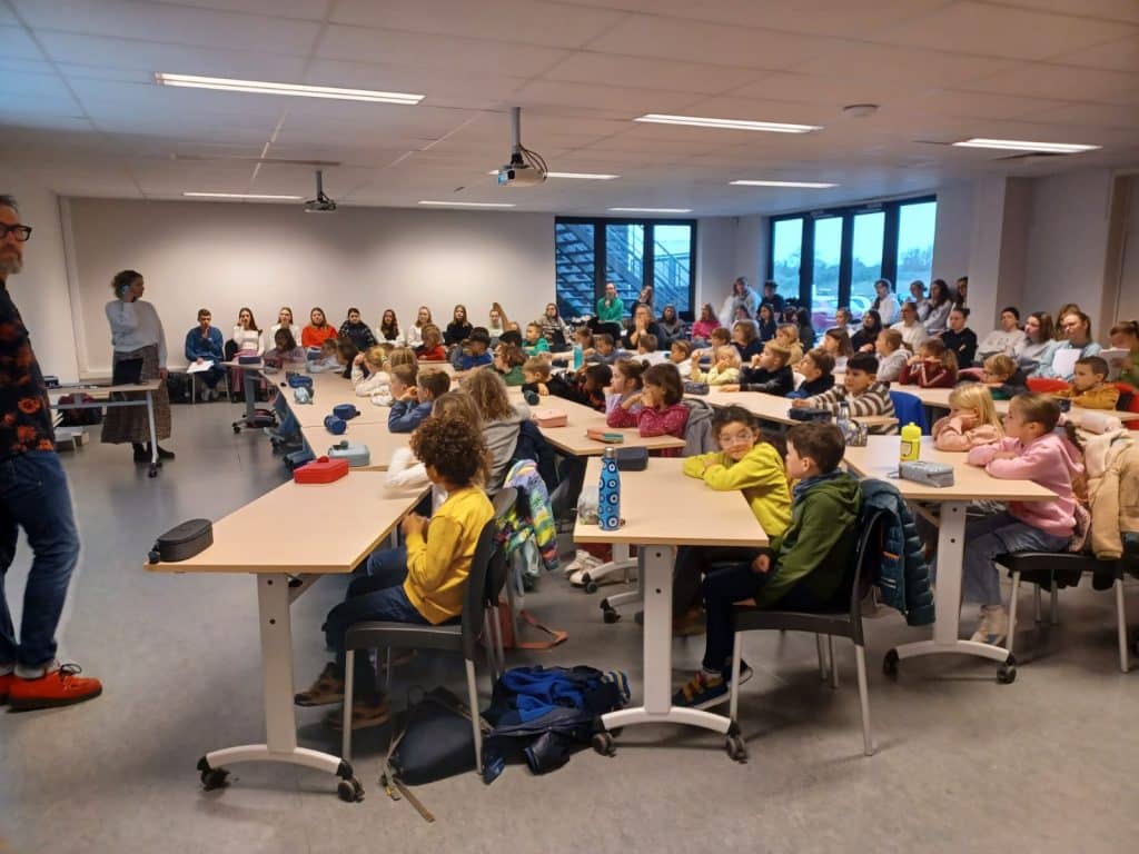 Pendant la matinée, ils ont pu assister à une leçon, animée par Monsieur Olivier Herbin (mieux connu des enfants sous le nom de « Monsieur Olivier »), en présence des étudiants de BLOC 1, futurs instituteurs primaires de la catégorie pédagogique de la HELHa.