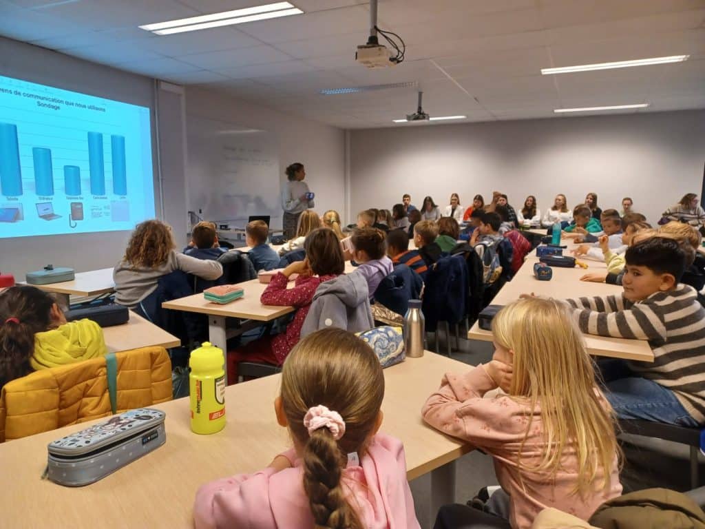 Dans le cadre de notre partenariat avec la Haute École, cette visite avait pour but de leur faire découvrir une “leçon-type” sur « L’évolution des moyens de communication », organisée dans le cadre des Ateliers de Formation Professionnelle (AFP).