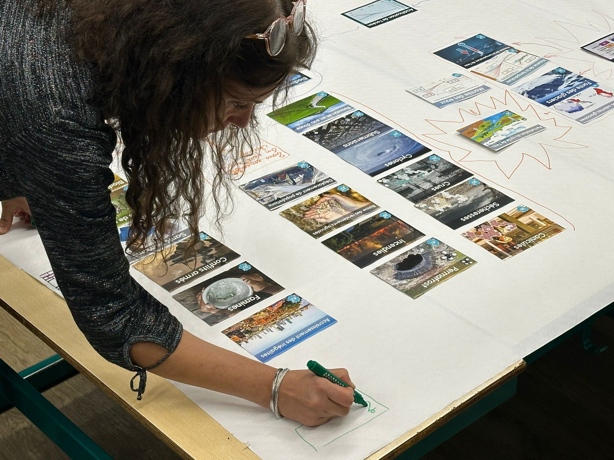 À travers la création d’une fresque composée de cartes représentant les différents mécanismes du changement climatique, nos enseignants ont pu approfondir leur compréhension de la complexité de ce phénomène global et réfléchir aux actions concrètes à adopter, que ce soit dans leur vie quotidienne ou dans leur pratique pédagogique.