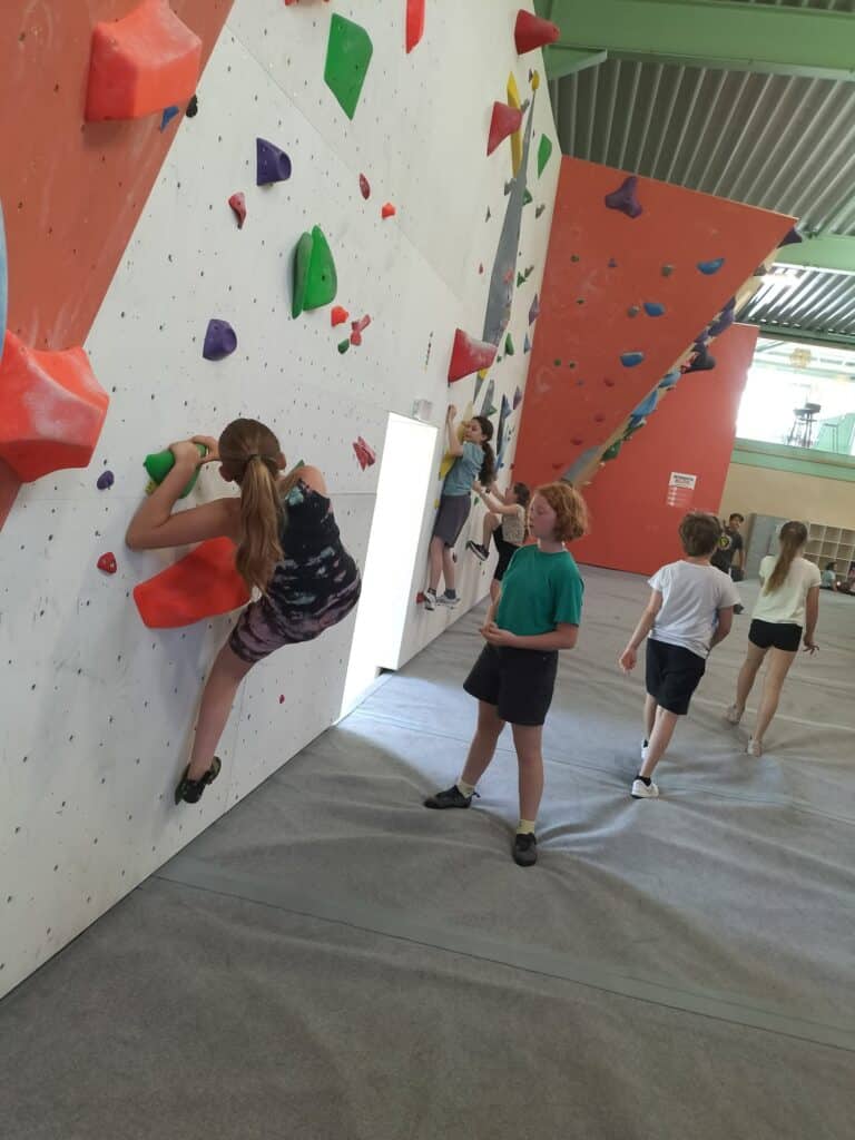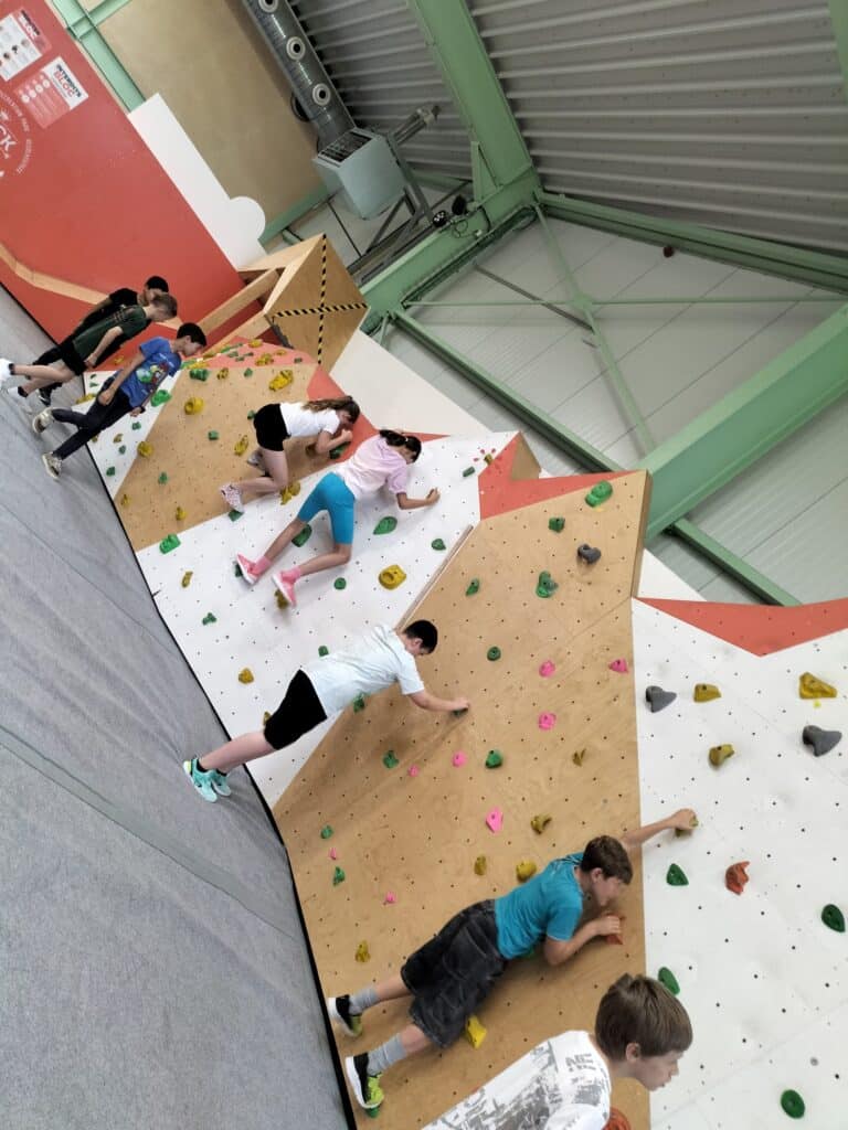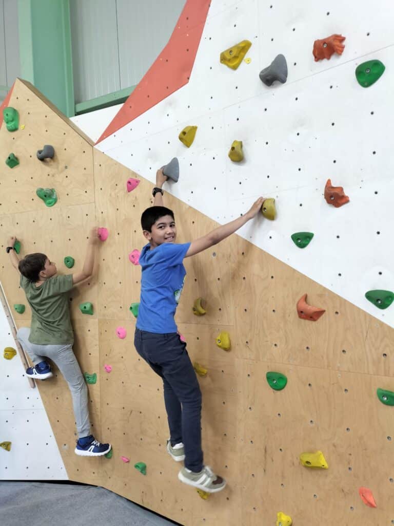 Accompagnés par les moniteurs, les P5 ont exploré différents niveaux, testant leur équilibre, leur force et leur détermination. Certains ont foncé tête baissée vers les sommets, d’autres ont savouré chaque prise, mais tous ont surmonté « la roche du doute » avec bravoure.