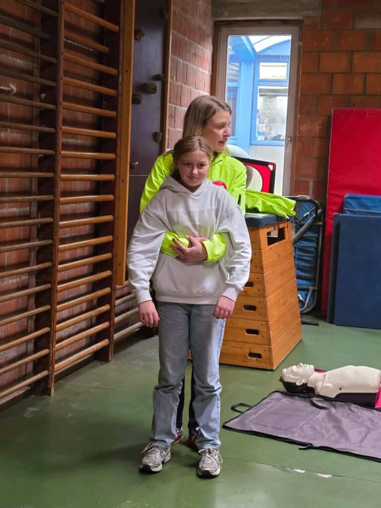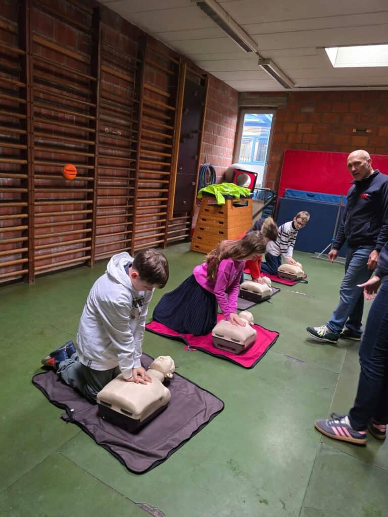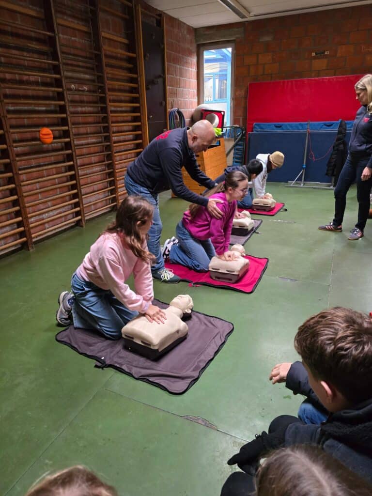 Le deuxième volet de la journée offrait une introduction à la réanimation cardiopulmonaire, adaptée à l’âge des élèves. À travers des explications simples, des démonstrations et des gestes symboliques, les enfants ont appris à reconnaître une situation d’urgence, à prévenir les secours efficacement, et à mesurer l’importance d’une action rapide en cas d’arrêt cardiaque.
